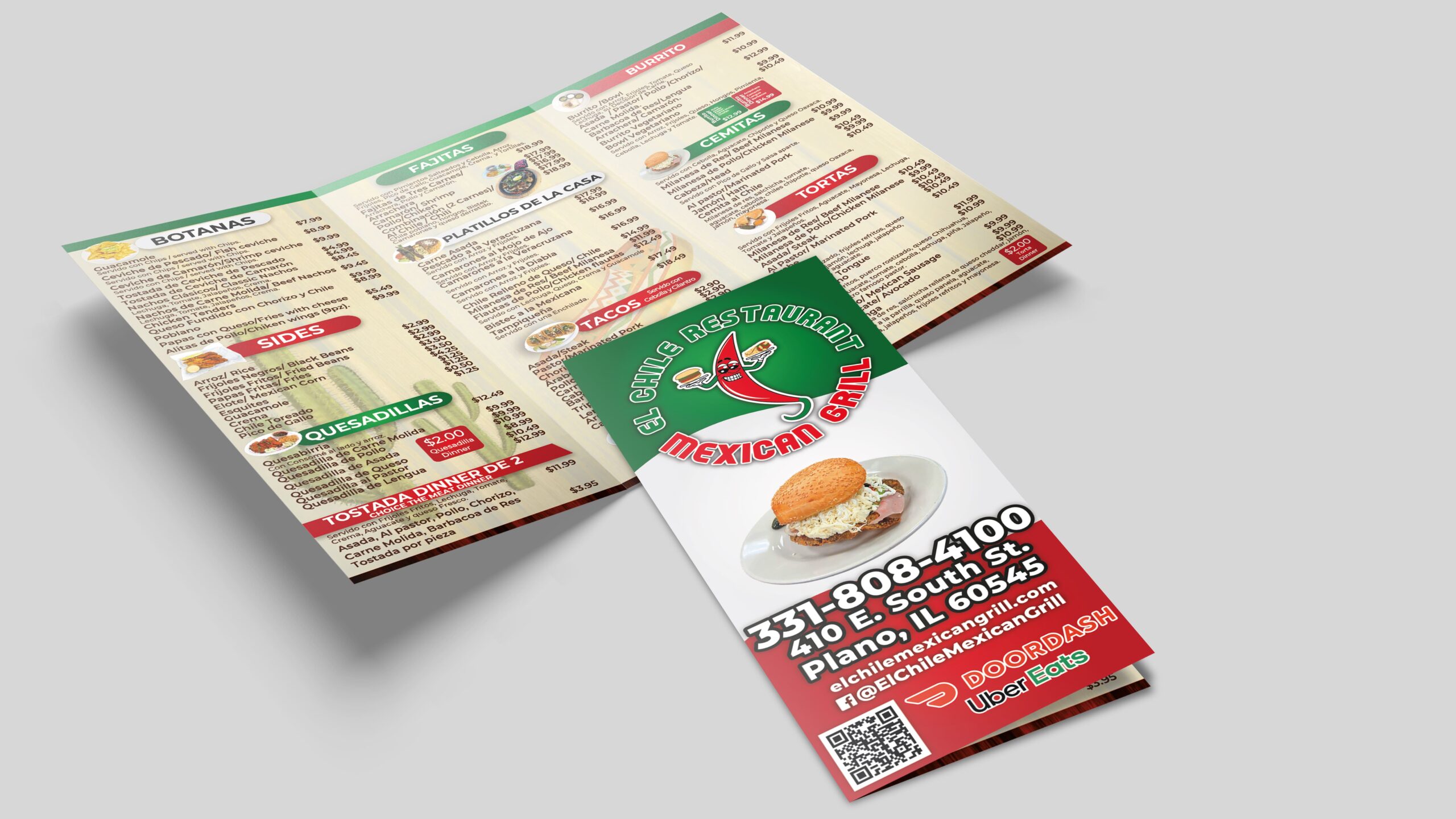 Menús to go impresos en ambas caras (parte frontal y parte trasera), sobre papel couché.